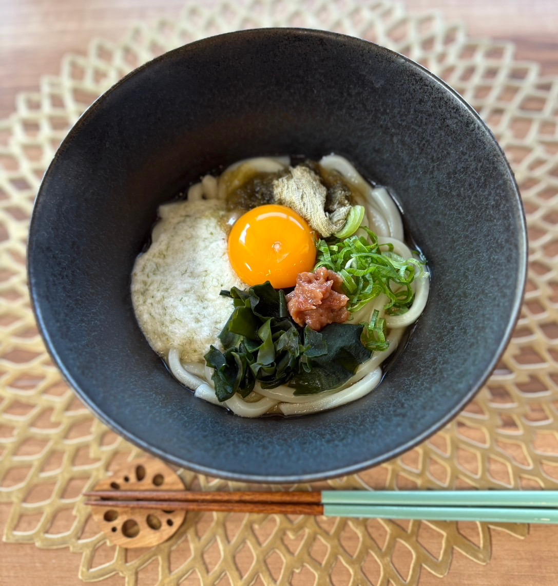 温かい月見うどんに、仕上げLeneの梅干しを。